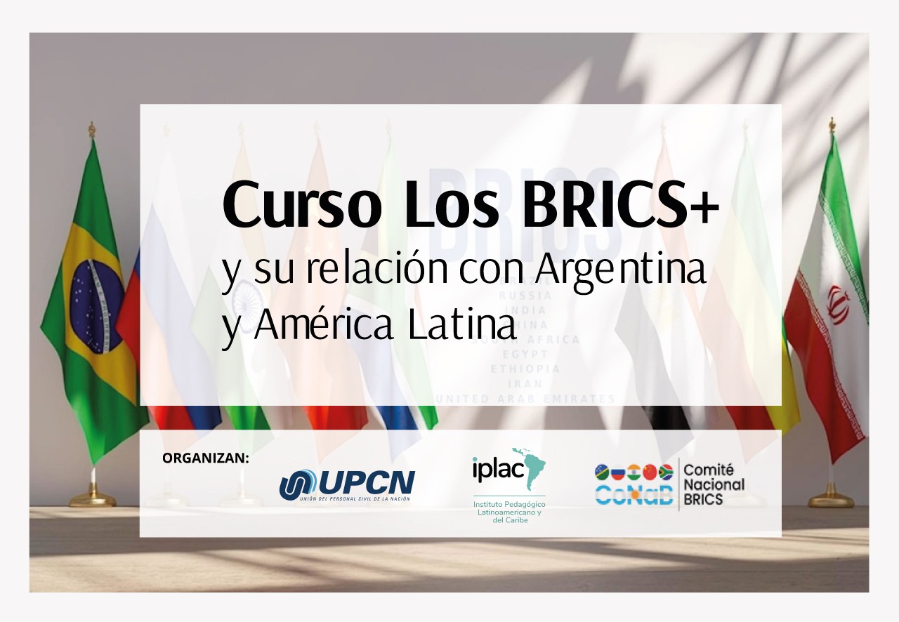 El Comité Nacional BRICS, CONAB, el Instituto Pedagógico Latinoamericano y del Caribe, IPLAC y la Unión del Personal Civil de la Nación, UPCN, organizaron un curso virtual integral para analizar el fenómeno de los BRICS+, un bloque que se consolida como el hecho geopolítico mas transformador de la actualidad.